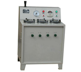 1、在使用前根據(jù)試件的試驗要求把壓力表調整好。調節(jié)的方式:壓力表的玻璃蒙的中間有調節(jié)旋鈕,它的上限、下限調節(jié)定值,需要借助一字螺絲刀,把上限指針擰到試驗規(guī)定的壓力數(shù)的位置,下限指針擰到比上限小0.1Mpa的位置,這樣在工作時當壓力達到要求值(上限值)自動停止加壓。當滲漏或透水使壓力下降到一定數(shù)值(下限值)氣泵又自動起動補充壓力。例如:試驗壓力要求0.3Mpa,表殼中間外圈,把上限指針撥到表盤的0.3的位置,再于螺絲刀將中間下限指針擰到0.2的位置。